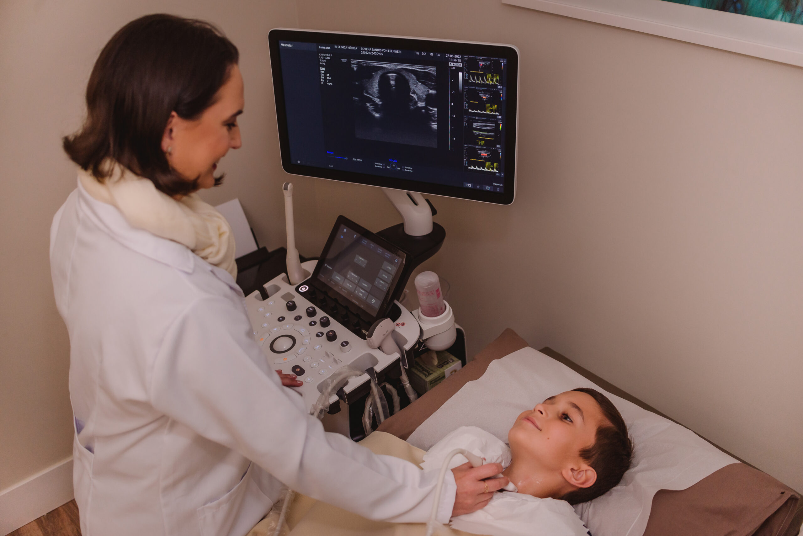 – A bexiga deve estar cheia durante a realização do exame, mas não excessivamente. Caso a vontade de urinar fique muito forte, esvazie um pouco a bexiga antes de entrar na sala de exames